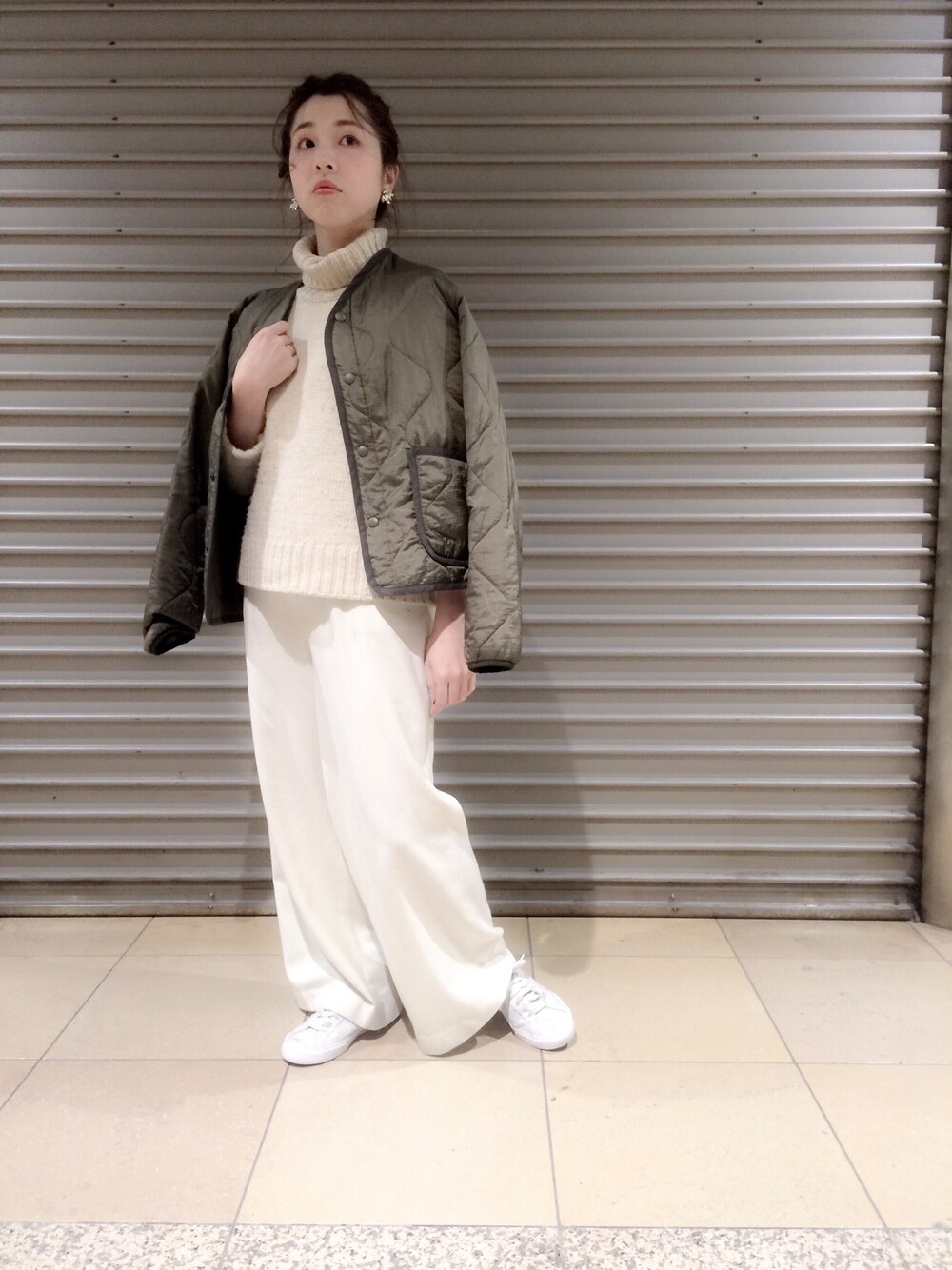 得意なワントーンコーディネート。 トレンドのキルティングライナーを取り入れてみました!