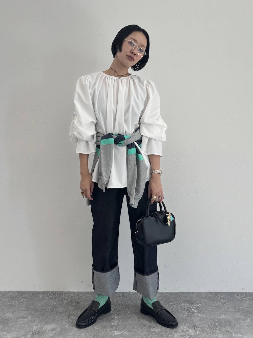 【ブラウス】 袖のボリューム感にこだわったブラウス!! 大胆なシャーリングデザインと袖元のベルスリーブが 1枚でサマになります!シワになりづらい素材でごわつきがなく 着心地も抜群! 肩周りのパフはさりげない膨らみにしているので骨格ストレートさんも抵抗なく着られるかと思います! オーバーサイズで、お尻が隠れる丈感なので体型も選ばずに楽しめるのもポイントです⭐︎