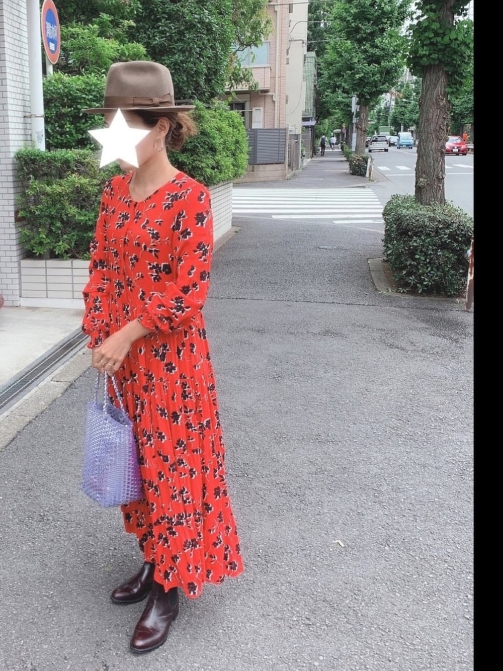急に涼しくなって、このOPを着られて良かった♪ はっきりしたカラーの花柄OPは、さらさらした肌触りでとっても着やすい! ハットが好きで、バランスをとるためにもよく被ります。