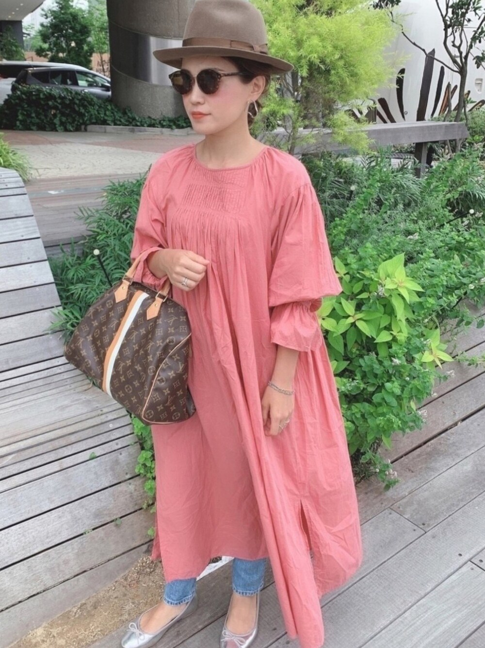 暑い日々が始まりましたね…💦 デザイン、カラーともに気に入ってるワンピース。この日は4ファミリーでランチ🎶 このハットも長年愛用しているもので、 ダメになったら素材、色、形、全てを同様に作ってもらいたいくらい🙏🙏🙏