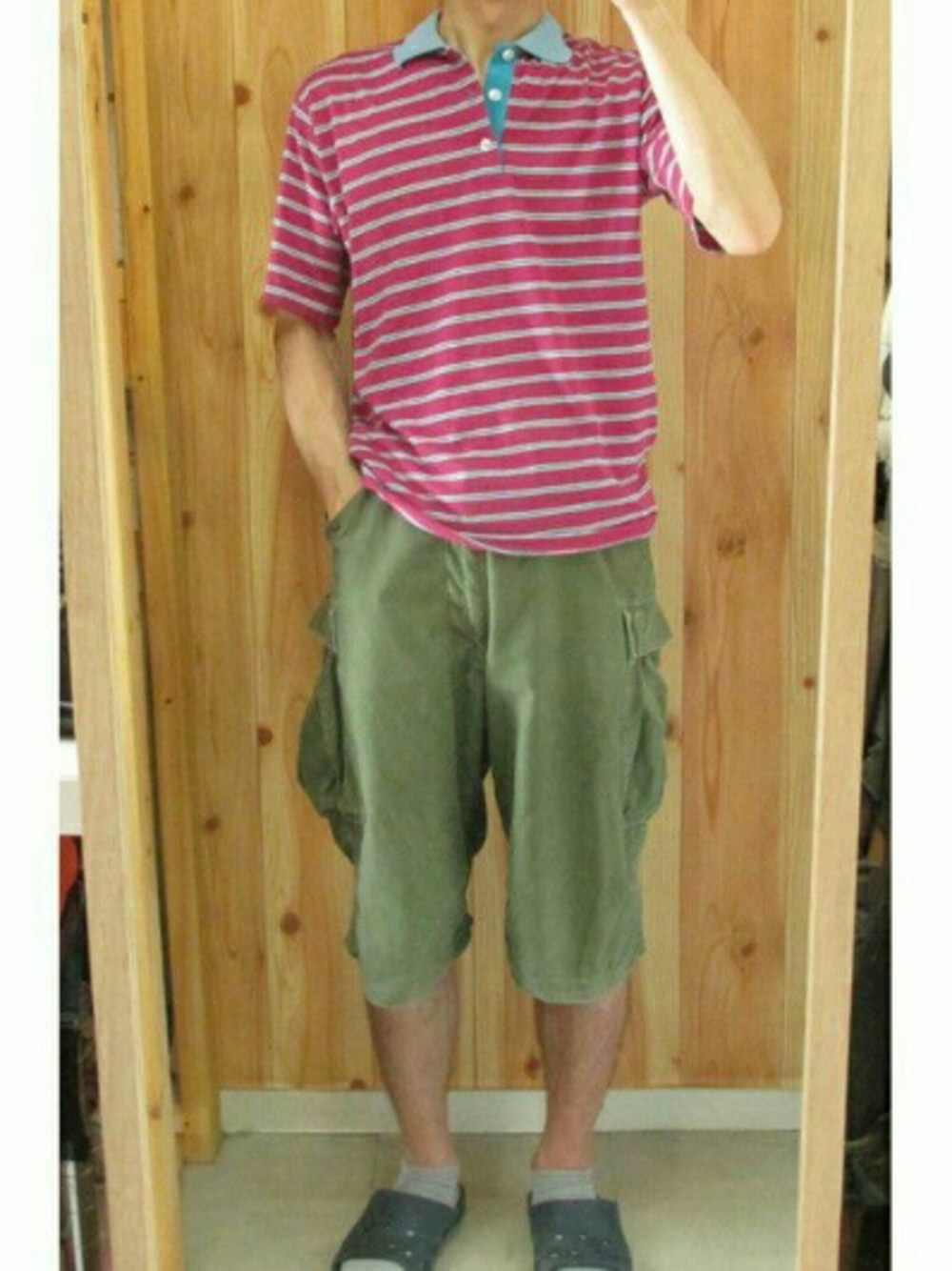 ポロシャツ Mサイズ M-51 パンツ(カットオフ) SAMLL 上記古着です。 サンダル(100均) 単品で見るとダサくも感じるポロシャツですが、襟のデザインや色合いが面白いと思います。 レギュラーのポロシャツは税込み1,000円以下から発売しております。(ネットでの出品は徐々に増やしていきます。) ハーフ丈のM51はビンテージををカットオフしたもので、暑い時期に大活躍してくれるパンツです。 冬期用でライナーを付けられパンツでゆったりしたシルエットです。 (生地も厚めに感じますが綿100%で、カットオフしてあればそれ程暑苦しく無いと思います。) ポケットの多いカーゴパンツは便利ですが、特に暑い時期は大抵の物がポケットに入るので手ぶらで出かけられるので便利です。 様々なメーカーのハーフ、ショート丈のカーゴパンツがあると思いますが、ポケットの機能性や質感等の雰囲気がミリタリーの物も良いので、裾や膝の傷んだものはカットオフしてみるのも良いと思います。 全て私服ですが、サンダル以外は同様の商品は販売しております。 古着&ビンテージ『BUFFALOHIP/バッファローヒップ』 staff