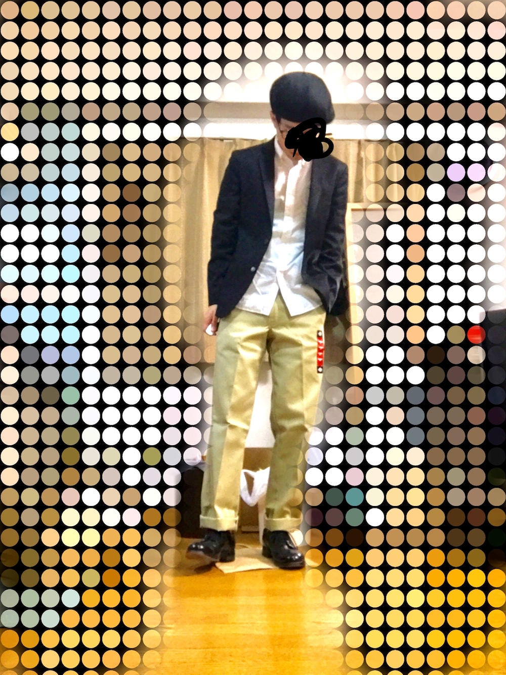 Dickies コーデその2 ドレカジバランス整えました。 これでもかというくらいカジュアルなパンツにドレスアイテムをぶち込んでバランス取りました。 タックインしたら昭和のおじさんになったので出しました。 本当はタイドアップ、タックインしてサスペンダーしたかったけど。 持ってない…。 これはこれでいい感じ。