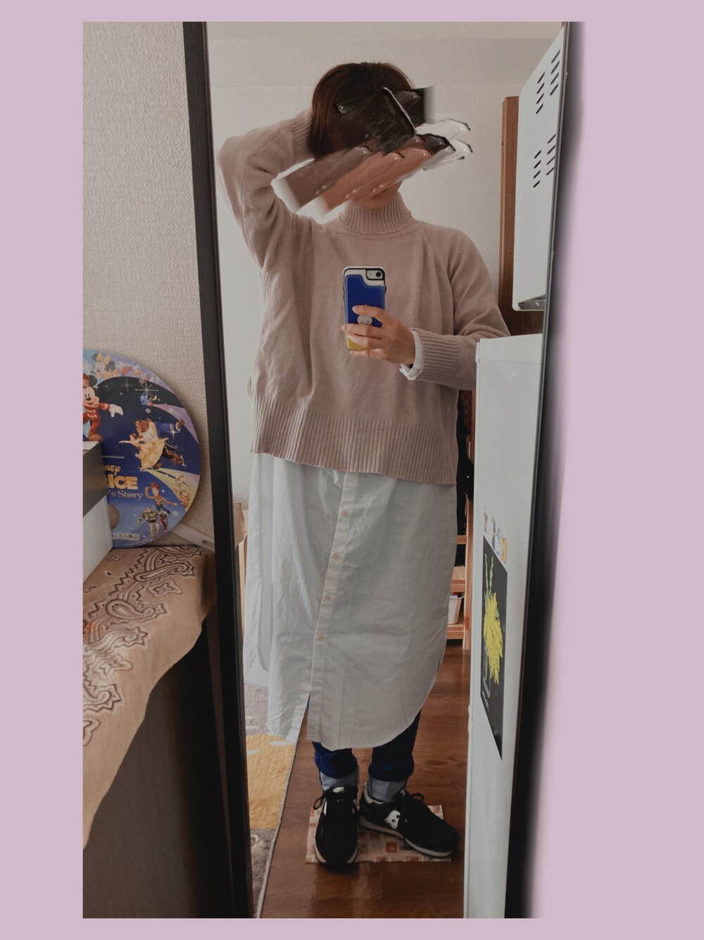 シャツワンピースは下半身デブ隠しアイテム。 重ね着ニットはスリット入りの方が緩く着れます。 #言葉はさんかくこころは四角 - くるり
