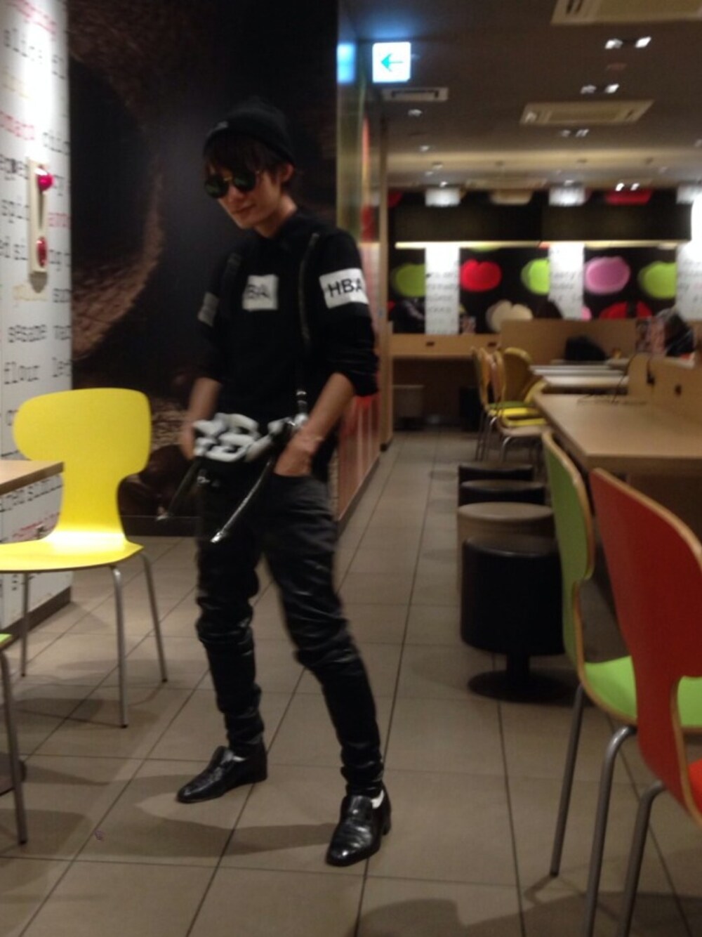 全身黒コーデです。夜のマック会に行ったときの服装です。ライダースジャケットがめちゃ欲しくなってます。