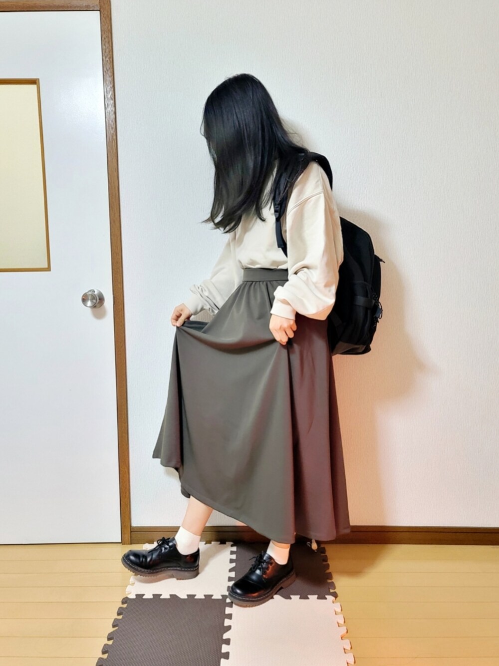 いつもフォロー、フォルダーイン、コメント、お気に入り、いいね、そしてご覧頂き誠にありがとうございます。 本日は今日のタグにもあります、休日スタイルを意識したコーディネートです。 と言っても休日しかスカートを履けない仕事をしている為、もっぱら休日のみスカートを履いております(笑) こちらのmoi tyttoさんのスカート、本当にシンプルで何の変哲も無いスカートなのですが、程良い重さで落ち感があり、素材もカッチリし過ぎず、かと言ってカジュアル過ぎなくてお気に入りのスカートです(^-^) トップスをオーバーサイズのスウェットにしていても、スカートがキレイめなのでカジュアルになり過ぎず、本当に程良い配合になるのもまた良きです(^-^)