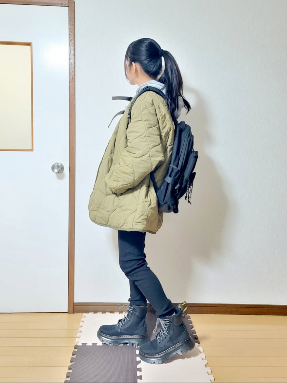 文のミリタリージャケット「ポイントキルティングコート」を使ったコーディネート