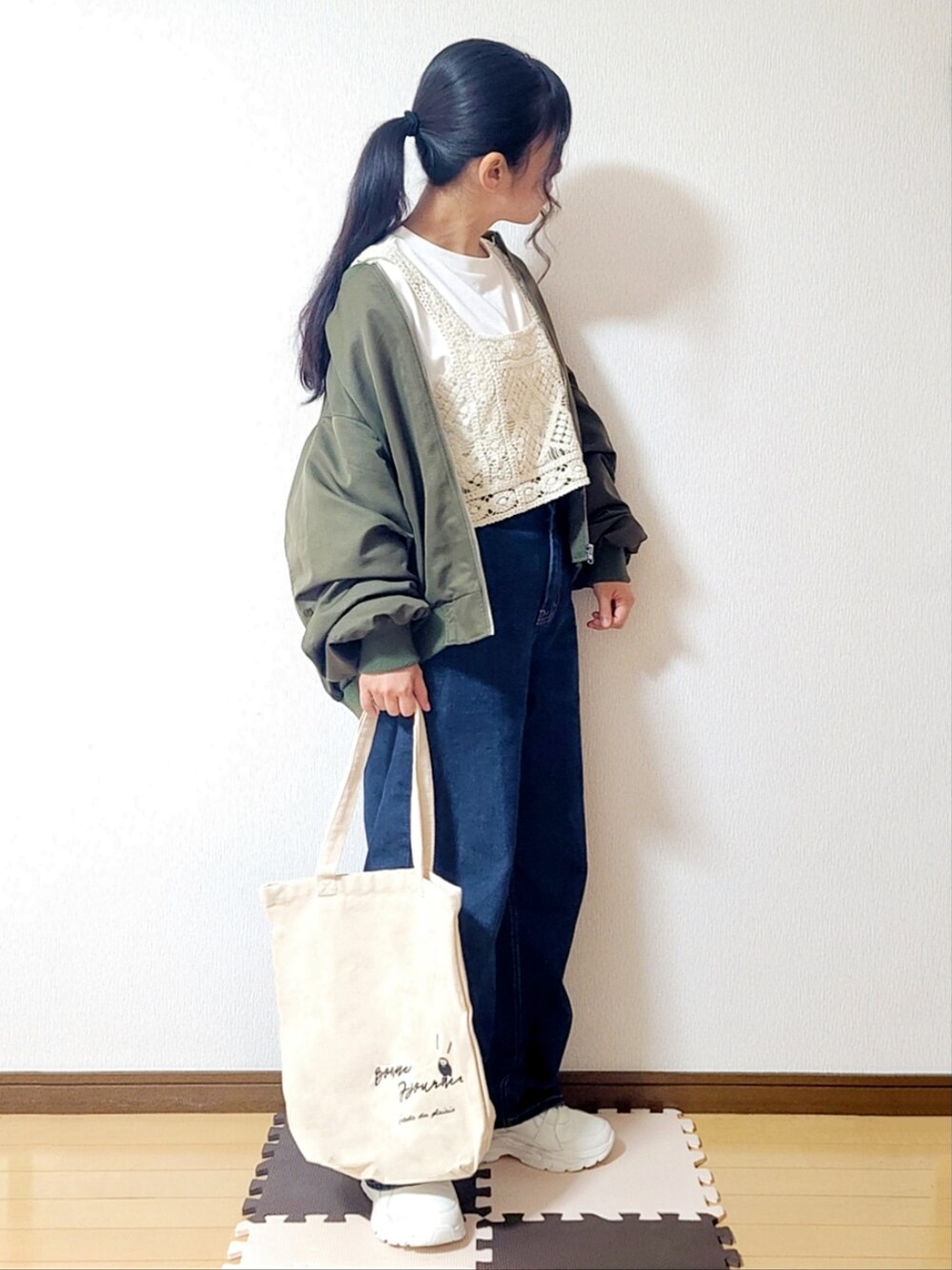 いつもフォロー、フォルダーイン、コメント、SAVE、いいね、WANT、そしてご覧頂き誠にありがとうございます。 本日は今日のタグにありますエアフォースワンを持っていないので、ダッドスニーカーを使ったコーディネートを失礼致しますm(_ _)m 因みに本日から3日間はエアフォースワンもNIKEの秋冬アイテムも持ち合わせが無いので、もし持っていたら、と想像しつつスニーカーを使ったコーディネートを投稿しようと思います。 まだ昼間は暖かさがある為、Tシャツにビスチェを重ねてみました。 このワイドパンツはウエストの細見え効果が半端無いので、大変お気に入りのお品です(^-^)