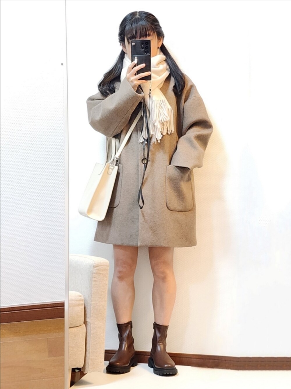 いつもフォロー、フォルダーイン、コメント、SAVE、いいね、WANT、そしてご覧頂き誠にありがとうございます。 本日は今日のタグにもありますマフラーぐるぐると、最近開催中のタグであります新星WEARISTAにエントリーを意識したコーディネートです。 メンズライクなワンループ巻き×ガーリーコーデでバランスをとってみました。 オーバーサイズのアウターで、小柄で華奢な印象になるよう努めています。 このアウター古着ですが、裾の丈感が絶妙で、個人的に大変好みですd(˙꒳˙* )