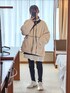 文のダウンジャケット/コート「ゆったりパイピングボアコート」を使ったコーディネート