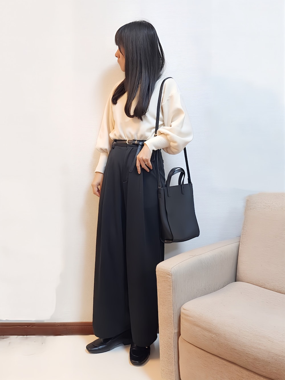 いつもフォロー、フォルダーイン、コメント、SAVE、いいね、WANT、そしてご覧頂き誠にありがとうございます。 本日もモノトーンですが、トーンが違ったアイテムを組み合わせてシンプルになり過ぎないよう努めてみました。 最近はベルトをワンポイントにしたきれいめコーデがお気に入りです(^^)