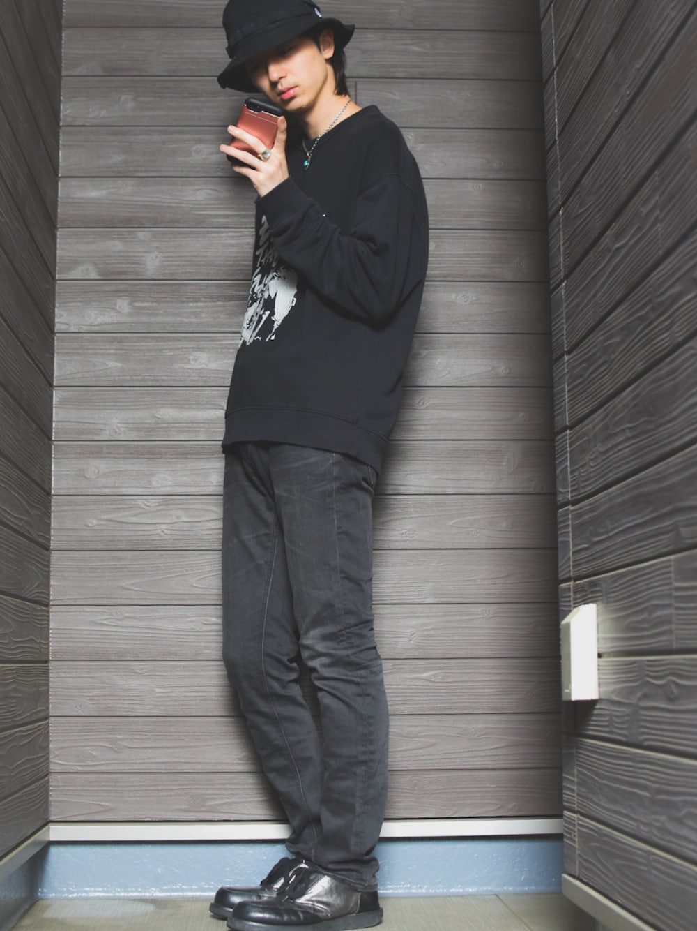 オールブラックコーデ tops→GU pants→nudie jeans shoes→ISSEI MIYAKE
