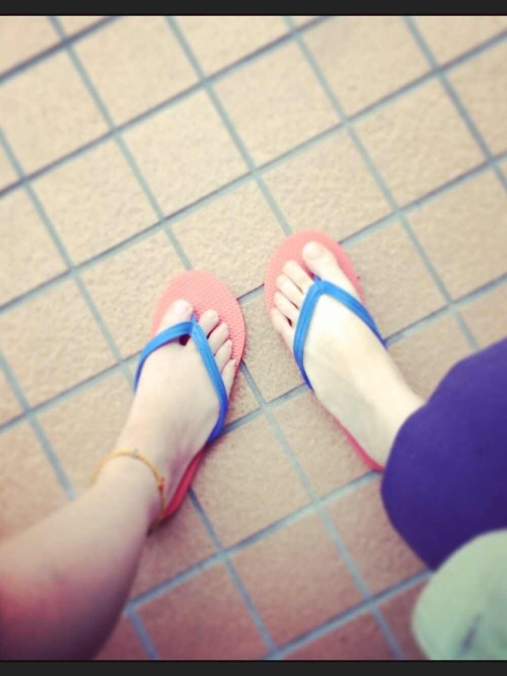 レッド系のサンダルを着用したレディースの春コーディネートの1枚目の写真