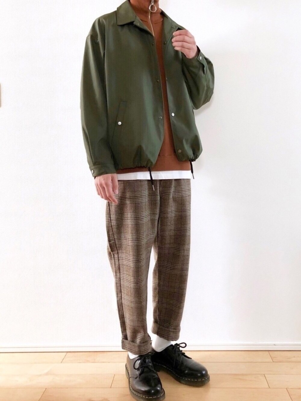 GUのビッグコーチジャケット💁♂️ ヘビロテ中に肉まんをこぼして消えないシミが付いてしまった😱 肉まんにだけは気をつけて…肉まんにだけは… ◾︎アウター : Mサイズ ◾︎ニット : Mサイズ ◾︎パンツ : Sサイズ