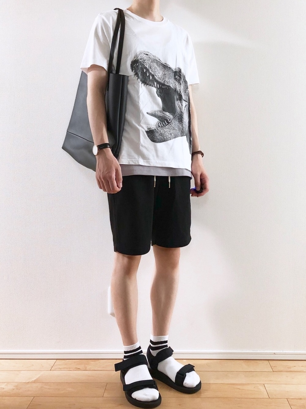プチプラ夏コーデ😎👍 Tシャツは去年のGUのやつです🦖 ◾︎Tシャツ : Lサイズ ◾︎タンクトップ : Lサイズ ◾︎パンツ : Lサイズ