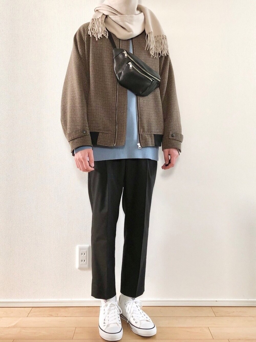 チェックブルゾンコーデ👏 春っぽさを少し取り入れてみました🎈 ◾︎アウター : M ◾︎ニット : L ◾︎パンツ : S