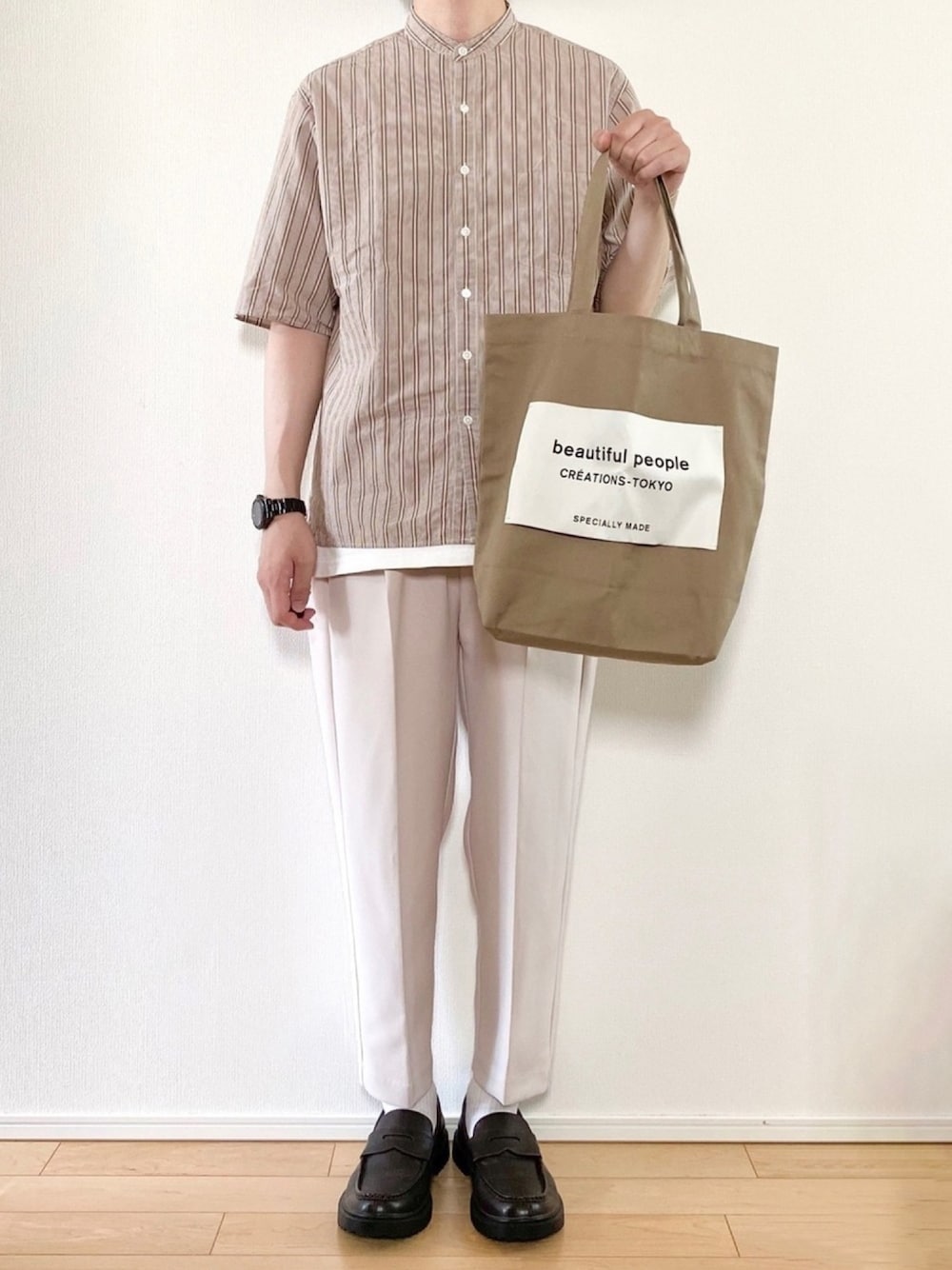 📷Instagram…@kon_kokon_kokokon ストライプシャツ×白パンツ💁♂️ ▪︎shirt : M ▪︎pants : S