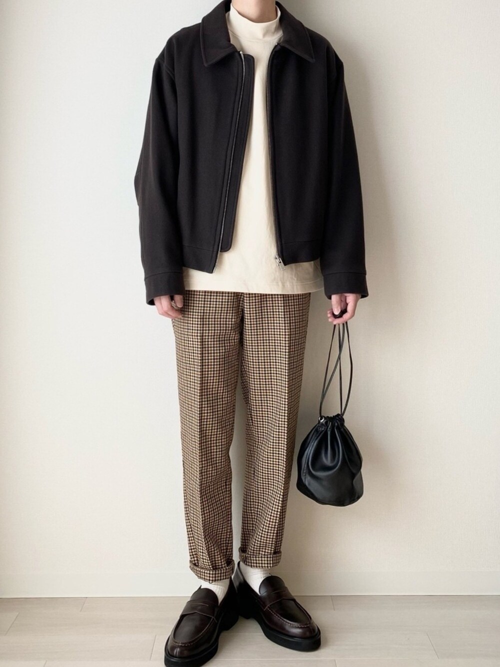 📷Instagram…@kon_kokon_kokokon ブルゾン×チェックパンツ🌞 ▪︎inner : L ▪︎pants : S