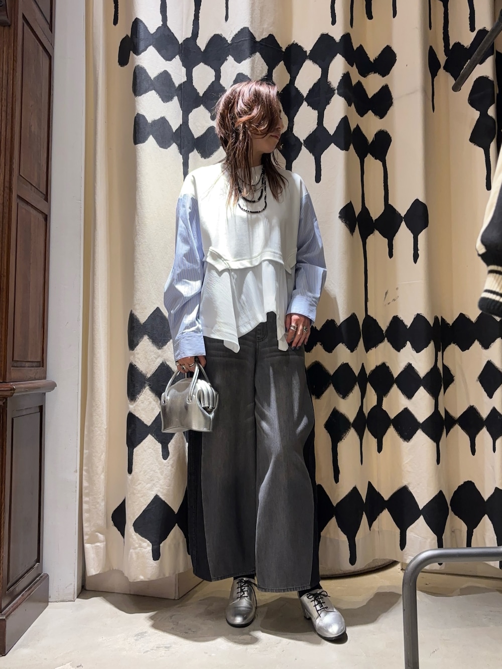kazuyo(ROYAL FLASH 上野店)のショルダーバッグ「OSOI/オソイ/別注CIRCLE MINI -SILVER-」を使ったコーディネート