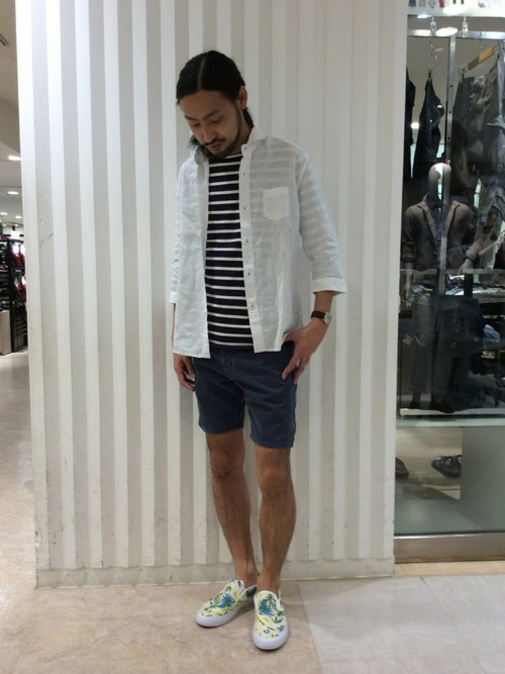 サマーコーデュロイショーツとスリッポンでより涼しいコーディネートにしました。