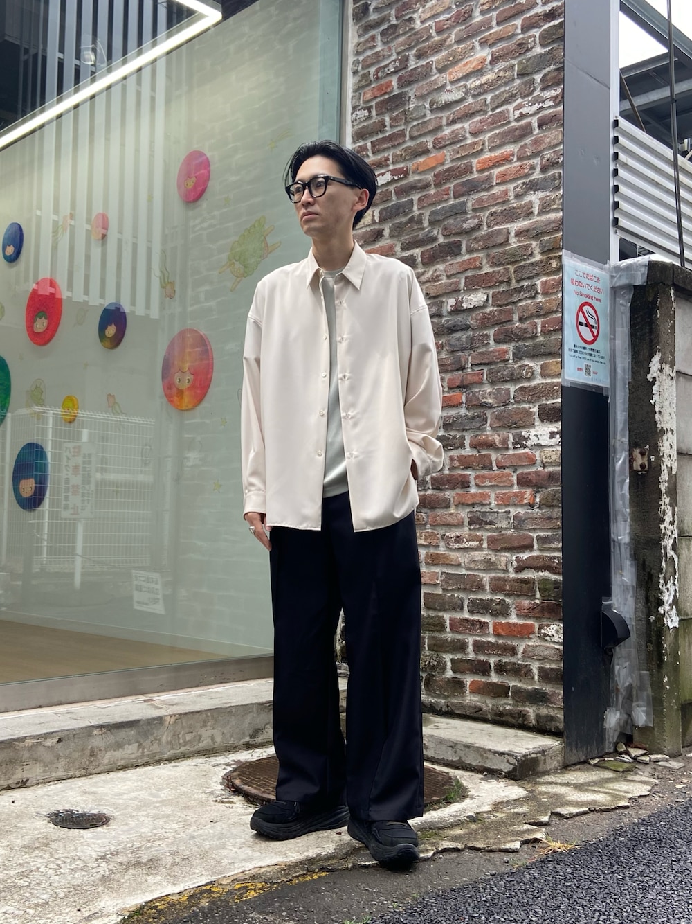 takushi nomura( PUBLIC TOKYO 心斎橋店 M)のシャツ/ブラウス「ドレープサテンライクオーバーシャツ」を使ったコーディネート