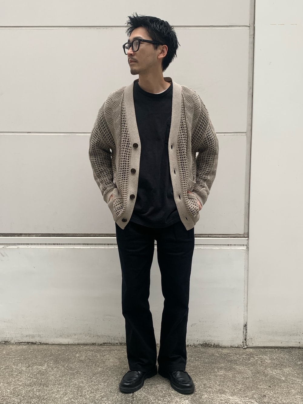 takushi nomura( PUBLIC TOKYO 心斎橋店 M)のカーディガン/ボレロ「オーバーメッシュカーデ」を使ったコーディネート