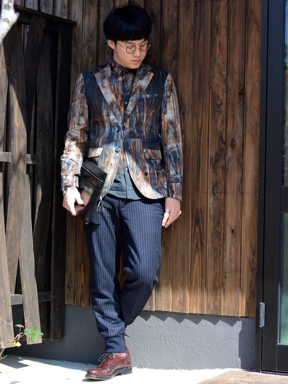 Eyewear: ayame Jacket: Casely-Hayford (14aw) Shirt: Casely-Hayford (14AW) Pants: RAIN MAKER (14AW) Clutch Bag: ED ROBERT JDSON Shoes: HEINRICH DINKELACKER 背景と同化してますね、、、笑 今年初投稿。(笑) もうヘビーアウターは着れなくなり、 まだ肌寒いですがコートの重い色は 避けるようになりました。 春が近づいてるんだなあと思います。 なんだかんだ15ssもすごく楽しい!!! 楽しい楽しい楽しい!!