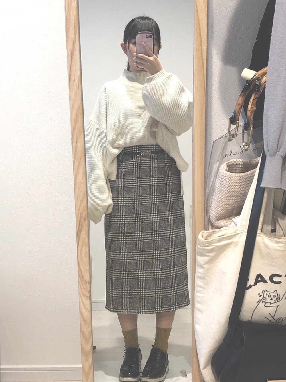 ぶぱみのスカート「起毛/グレンチェックナロースカート」を使ったコーディネート
