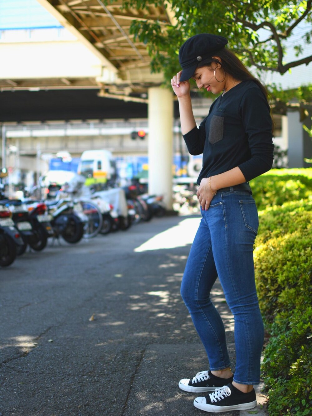 ひかごじのTシャツ/カットソー「キーホールネック ポケットティーシャツ/ KEY HOLE NECK POCKET T-SHIRT」を使ったコーディネート