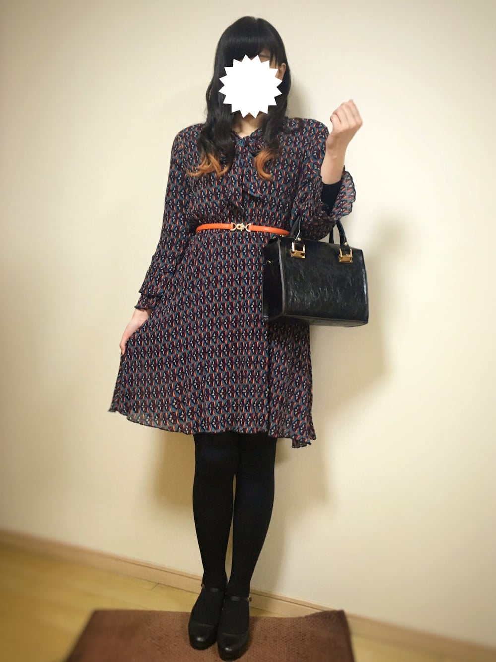 グレープフルーツムーンでワンピースを購入👗 ブランド名も分からず古着なのかも分からず… 近くで見るとベルトと同じ色の柄が入ってるので合わせてみました。 スカートが短めなので今風なかんじのコーデになってもうた