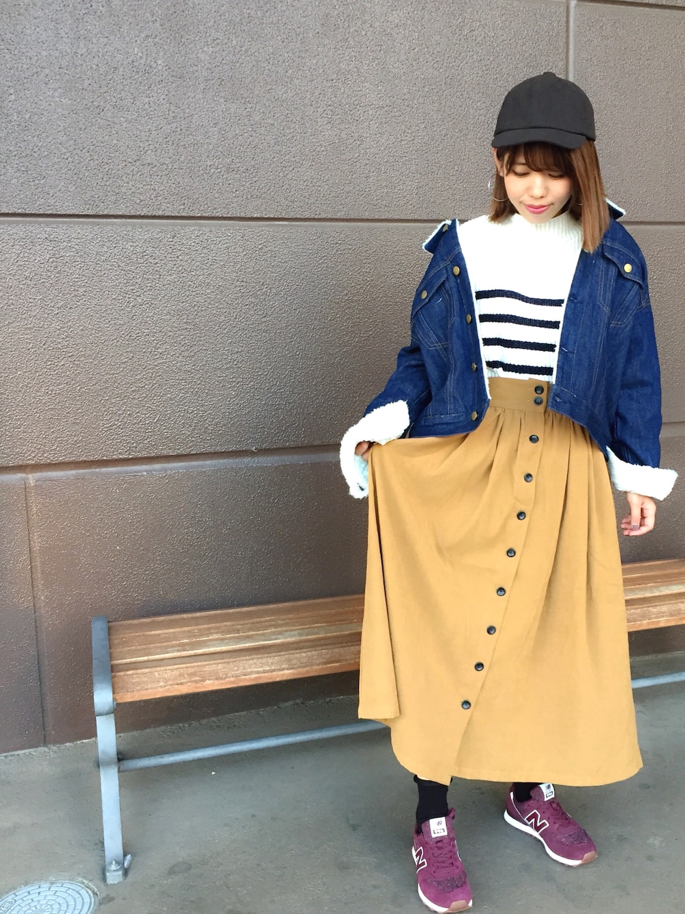 おはようございます☺︎ 寒い日にもピッタリ裏ボアGジャンのカジュアルコーデです スカート以外でもパンツやワンピースにも合わせやすいデイリーユースなアイテムなので1枚あると便利です(´v`)
