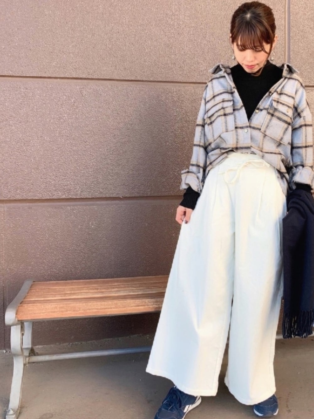 おはようございます☺︎ チェックシャツにデニムではなく白パンツ合わせることで大人カジュアルなコーデになります( ´v`)