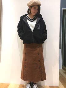ミナマロンのブルゾン「・RAYCASSINフード付ジップボアブルゾン」を使ったコーディネート