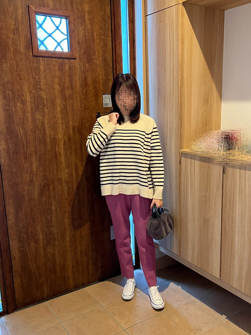 @buru1113のニット/セーター「ヘンリーネックボーダー柄前後着2WAYニット」を使ったコーディネート