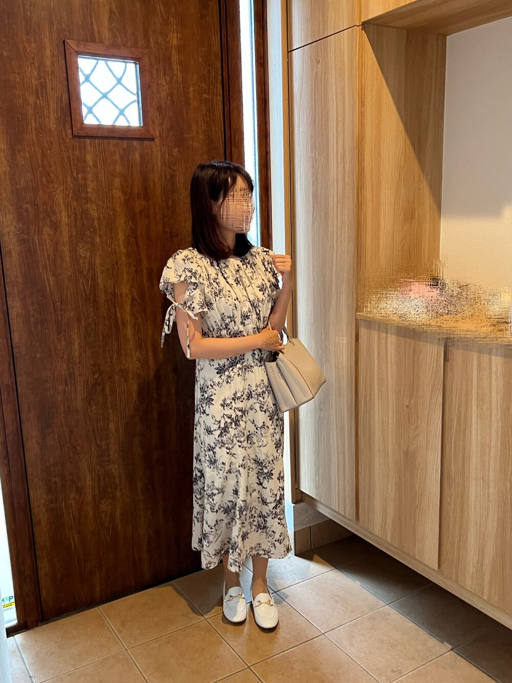 @buru1113のワンピース「花柄 スクエアネック バックスピンドルワンピース」を使ったコーディネート