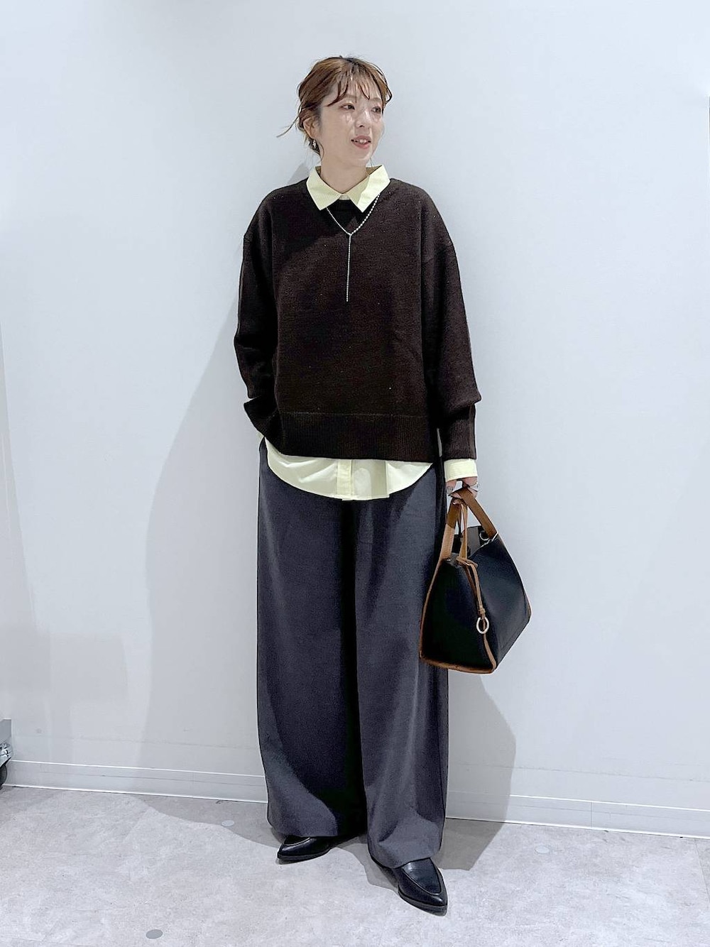 大人カジュアルコーデ♡ 168cm 高身長 骨格ウェーブ 普段 着用するサイズ:Lサイズ ニット/REGULER □着てみて…軽〜い着心地、チクチク感なし、そこまで肉厚ではない、少しインナーが透ける もっちりふんわりで着心地の良さが人気のHugmeニットシリーズ!開きすぎないクルーネック、前後着丈の違いと裾にはスリットで抜け感のあるデザインです( ¨̮ )インナーにシャツや薄手ニットを重ねてもかさばらず自然なシルエットで着れますよ♡ シャツ/Lサイズ □着てみて…レイヤードがしっかりできる着丈 差し色にも使えるNEWカラーが登場! シーズンレスで着回しの効くシャツはマストアイテム 新色も入荷!差し色にも使えて、ベーシックなのでON/OFF着回せます♡ パンツ/Lサイズ □着てみて…ウエストは幅広の総ゴムで窮屈なく楽ちん 腰位置からAラインのワイドシルエットなので身体のラインを拾いにくく細見えするデザインです( ¨̮ )見た目はウール見えな暖かい素材♡寒がりの方はインナープラスでよりあったか︎︎👍🏻︎︎ ▼アイテム詳細下からご覧下さい⬇️ はってぃー他のスタイリングはこちら 低身長コーデが得意なママスタッフ シンプルラフコーデが得意なメンズスタッフ ぜひこちらもご覧下さい♡