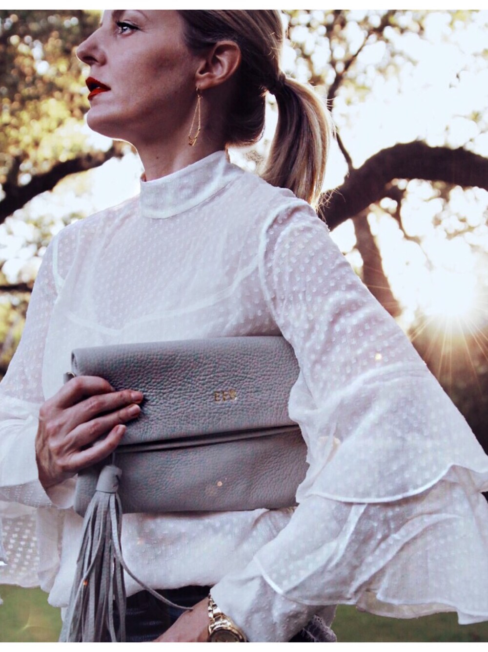 Erinのクラッチバッグを使ったコーディネート