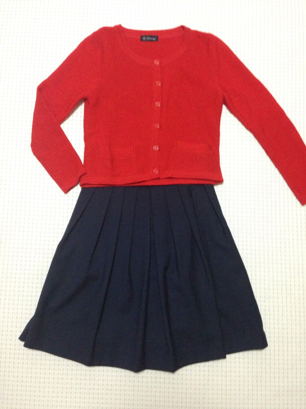 朝撮り損ねたので床置きで。 トリコロールカラーな一日。 このユニクロの去年もののスカート、安いのにすごくしっかりした作りでコストパフォーマンス良すぎ。