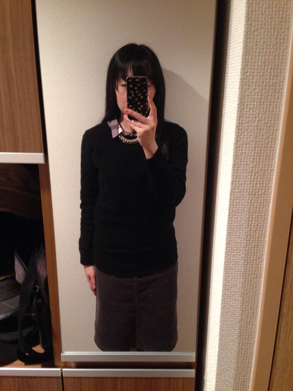 全身ダークトーンになってしまったので、写ってないけどタイツはボルドーにしました。