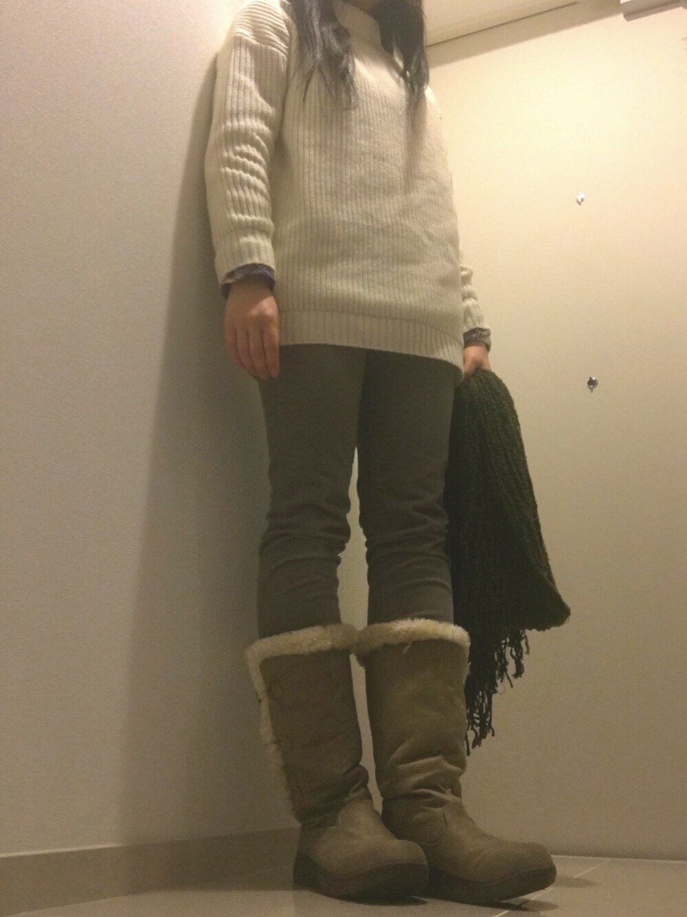今日もアイスバーン対応で雪国スタイルです☃️ ヒートテックパンツに、ネルシャツとニットの二枚重ねでしっかり防寒。 少しでもすっきり、ベージュのワントーンにしました。