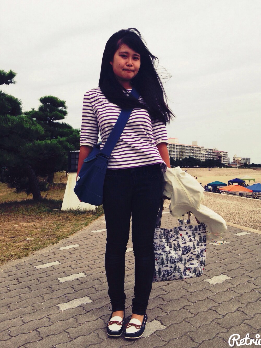 海にきたよ! ボーダーは手作りです! 手に持ってる上着はお気に入りです! また投稿します!