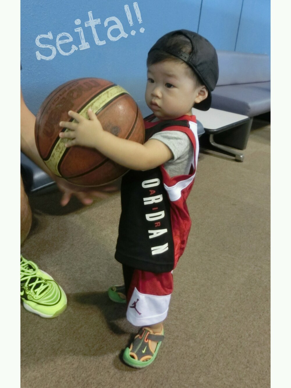 パパのバスケの応援♪♪♪ ボールがまだまだこんなにおっきい(>_<) ボールを追いかけて走り回って☆元気!!! それを追いかけるママはへとへとだよ(*_*)