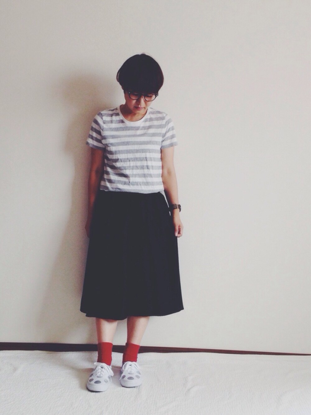 まだ半袖を着てしまう。 Tシャツ☞無印良品 スカート☞パーリッシィ 靴下☞ショセット 靴☞チキンノット