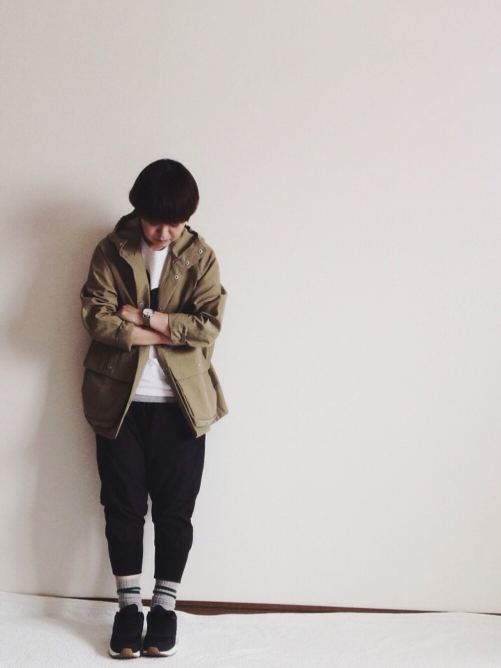 ユニセックスサイズで少し大きめ。 中にセーターとか着てもモコモコしないかな。 アウター☞YAECA パンツ☞nutte インナー☞イオグラフィック スニーカー☞ナイキ