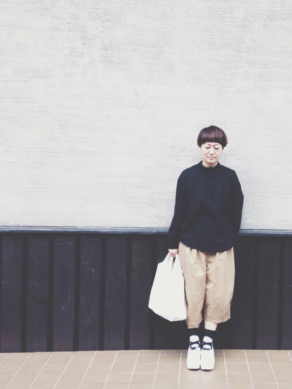 ホワイト系のその他シューズを着用したレディースの秋コーディネートの1枚目の写真