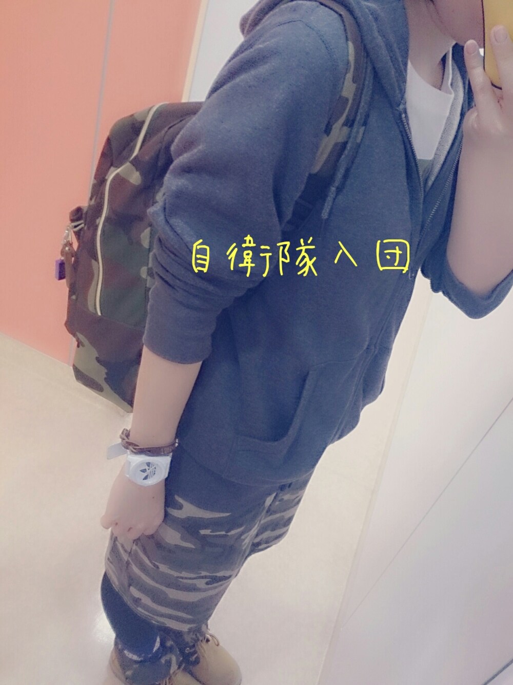 今日は自衛隊入団っ。笑 カモフラで揃えましたっ♡ Tシャツ→カモフラ ROXY タイトスカート→カモフラ HeartMarket ブーツ→カモフラ カバン→カモフラ うちのおじいちゃん、おばあちゃんに 自衛隊入団するの?って言われましたっ笑