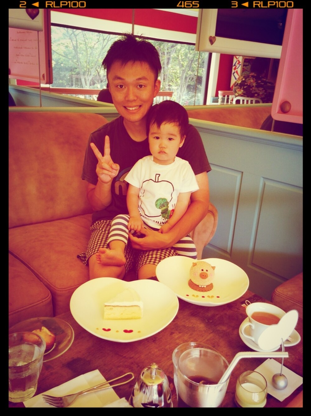 結婚記念日には毎年ここでケーキを食べます( ᵕ́ૢ‧̮ᵕ̀ૢ)‧̊·*ウェディングケーキを作ってくれたカフェです♡ とーちゃん Tシャツ ハワイ パンツ handmade ゆうたろう Tシャツ 腹ペコあおむし パンツ UNIQLO