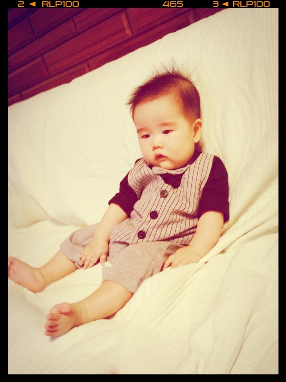 ゆうたろうハーフバースデーでの一コマ。写真撮られまくってお疲れのご様子 (ѳ ѳ )親の自己満足に付き合ってくれてありがとう!!笑 これからもイベント事は大人も子どもも関係なく楽しく盛大にやるのでお付き合いください♪₍₍ ( ๑˃̶◡ ˂̶๑)◞ ゆうたろう ロンパース 西松屋