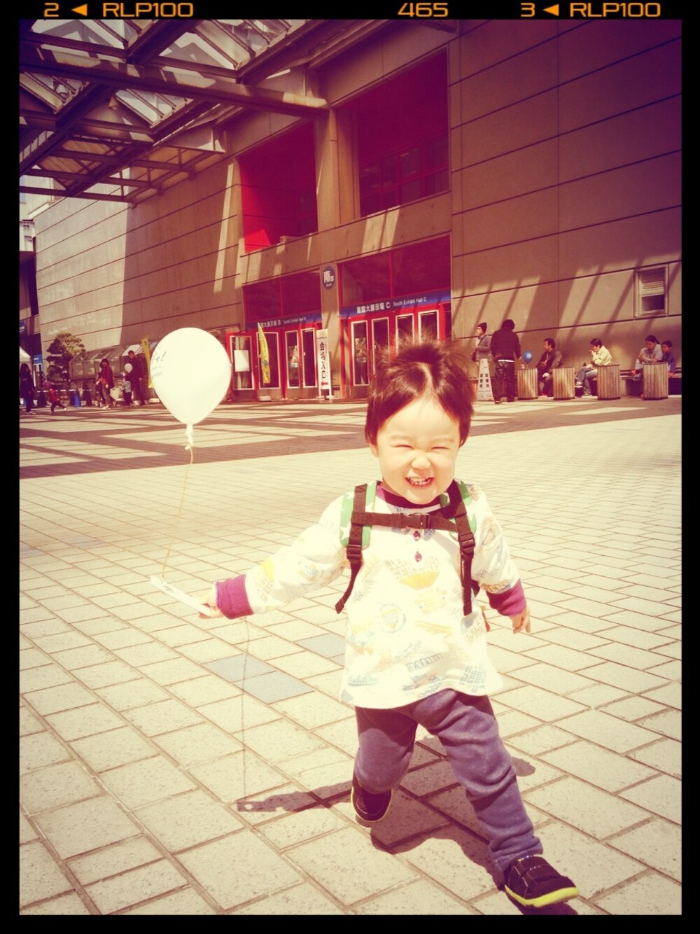 風に飛ばされる風船を慌てて取りに走るとーちゃんを見て爆笑する息子(๑′ᴗ'๑)容赦無く何度もやります!! ゆうたろう スウェット moujonjon パンツ トイザらス 靴 赤ちゃん本舗 リュック moujonjon