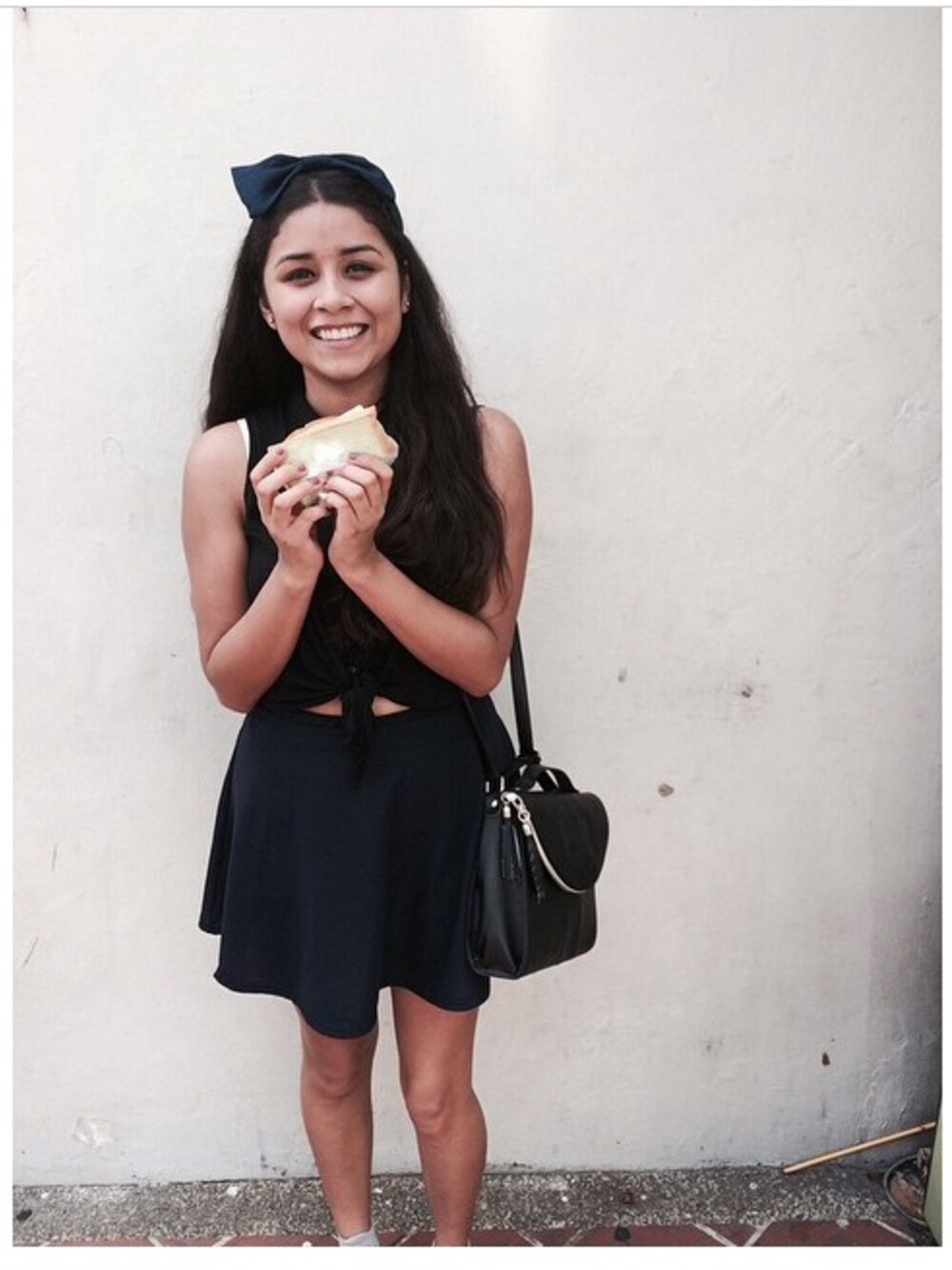 Sunny bright day, sightseeing a new city or country? Try something fun & flirty! Easy to find & easy to style. A black front tie shirt with a blue old school skirt tied to your waist. Add a big bow to make the whole outfit shine :)
