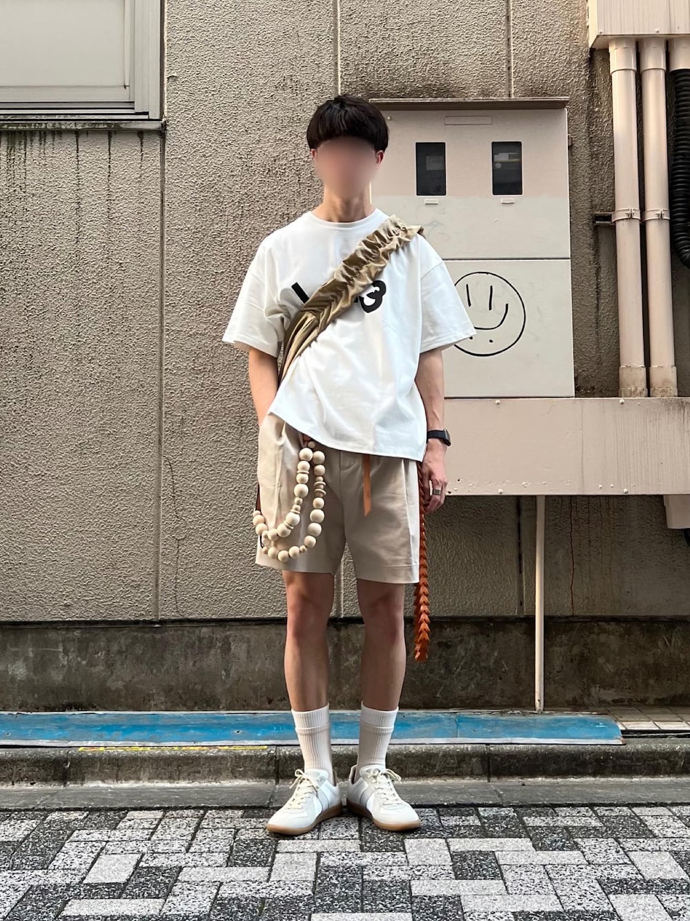 T : @lr3_louisrubi pants : @hedmayner shoes : @maisonmargiela bag : @ouat_tokyo accessories1 : @nodzoku.official accessories2 : @henderscheme 腰まわりジャラジャラコーデ。 半袖半ズボンなので子どもっぽくなりがちですが、アイテムと色で特別な民族感を出しました。 ブラウン・ベージュ・ホワイトの3色でワントーンにまとめました。
